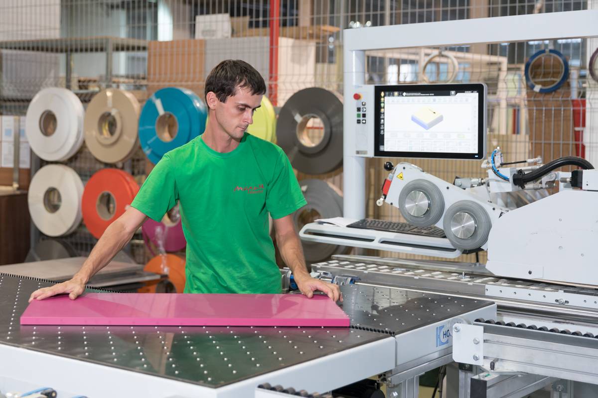В лазерный станок (Германия) загружается кромка сразу 5 цветов