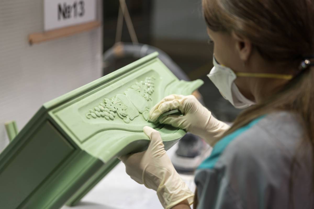 Здесь декорируют готовые фасады и столовые группы, прибывшие из Италии